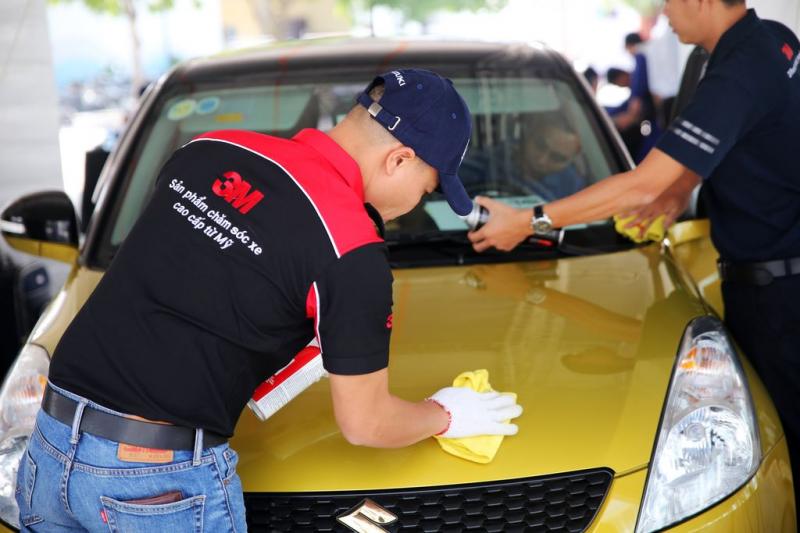 Đội ngũ kỹ thuật viên của 3M đánh bóng lại xe cho khách hàng