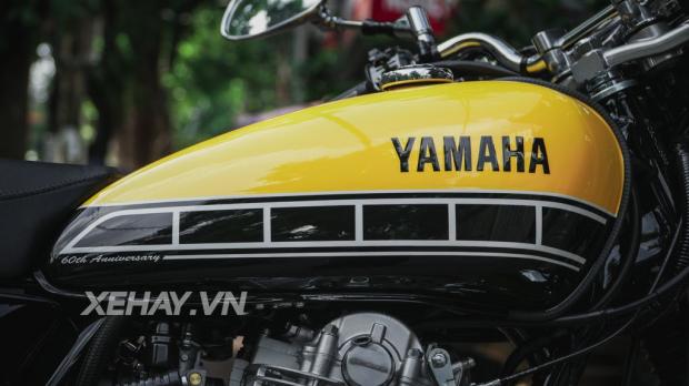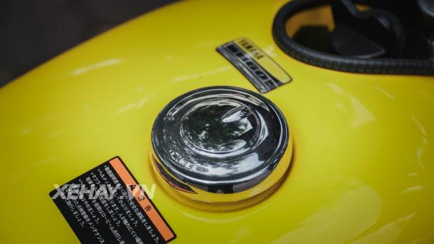 Bình xăng của SR400 60th Anniversary có dung tích 12 lít được sơn sơn vàng với điểm nhấn là sọc đen hai bên hông. Đây cũng chính là 'Speed Block' - Tem đấu đặc trưng và là điểm đặc biệt nhất của các dòng xe Yamaha phiên bản kỷ niệm 60 năm.