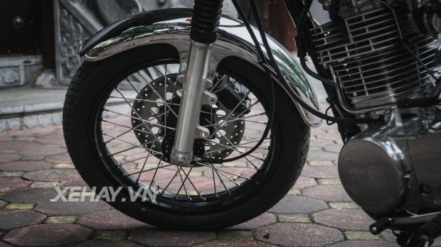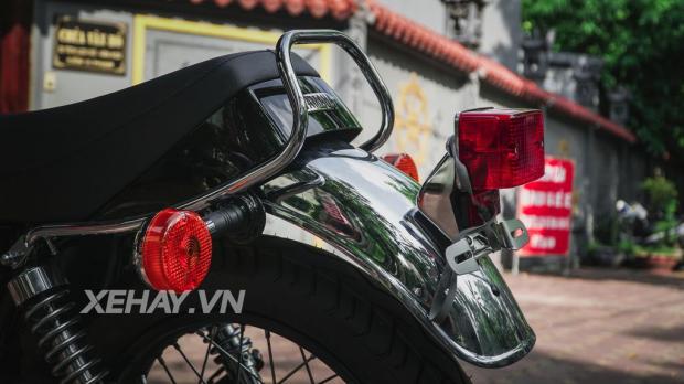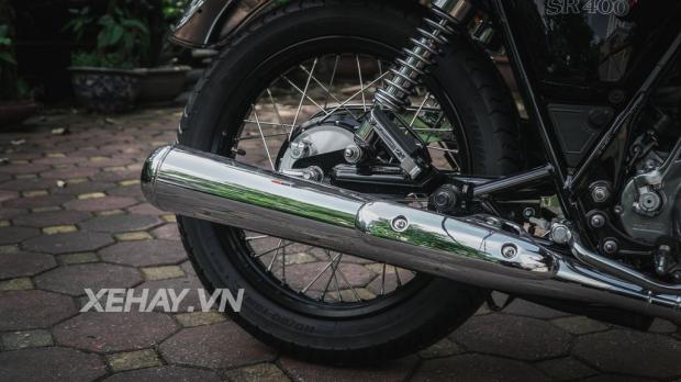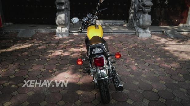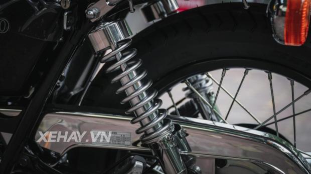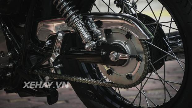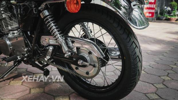 Sức mạnh của xe được truyền tới bánh sau qua xích. Bánh sau vẫn sử dụng phanh tang trống cổ điển. Lốp sau là loại Brigestone Battlax có kích cỡ to hơn một chút so với bánh trước, cụ thể là 110/90/18. Ngay cạnh đó là ống xả được mạ chrome sáng bóng.