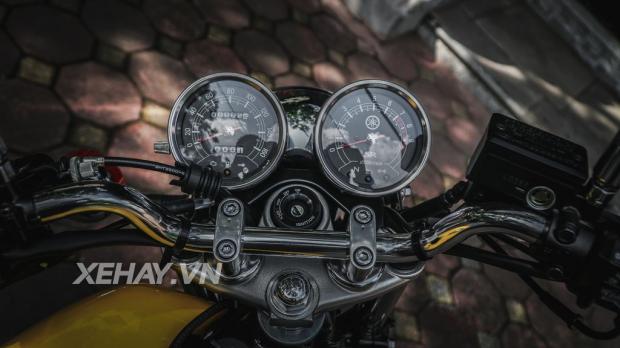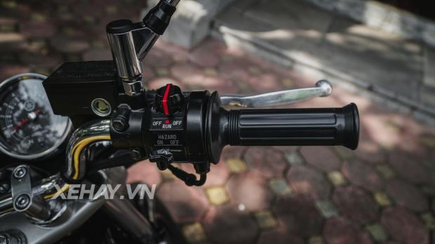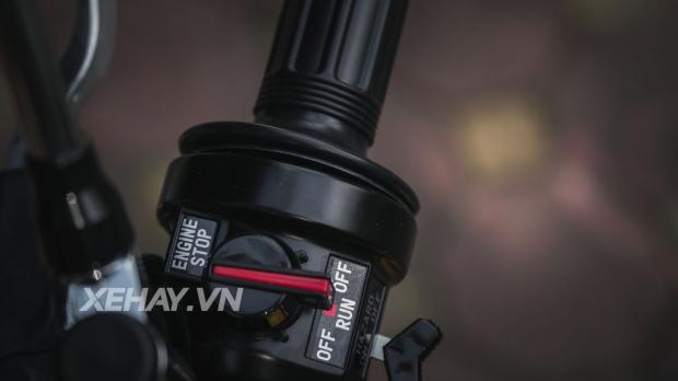 Công tắc tắt động cơ của SR400 được Yamaha thiết kế khá độc đáo với 3 nấc, trong đó nấc bật nằm giữa hai bên nút tắt.
