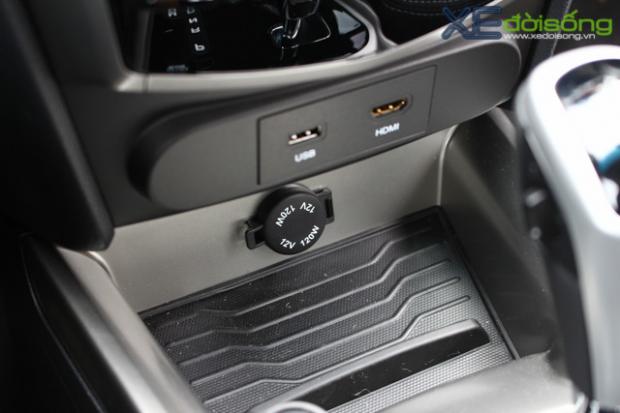 Ổ cắm 12V cũng xuất hiện phía bệ trung tâm cùng ổ cắm USB, HDMI
