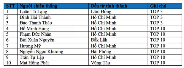 Ngày 31/10/2017, Abdul Hamid Bin Jonid, thí sinh người Singapore đã chiến thắng giải thưởng là một chiếc xe Subaru XV 2.0i-S sau 74 giờ 15 phút thi đấu. Ngoài ra, thí sinh Luân Từ Lạng của Việt Nam...