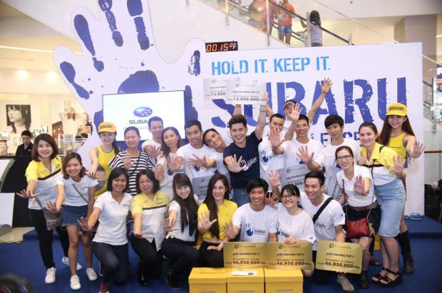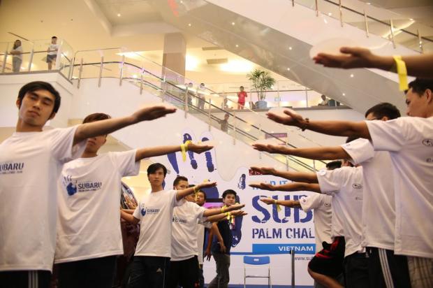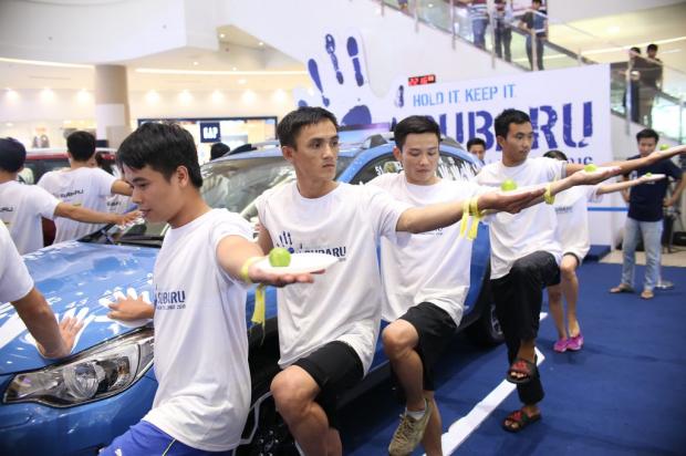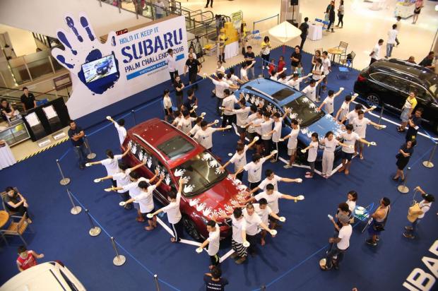 Trong thử thách “Subaru Palm Challenge”, người chơi đặt tay phải lên vị trí quy định sẵn, đứng liên tục ít nhất 72 tiếng sẽ có cơ hội nhận được phần thưởng là ôtô Subaru XV.