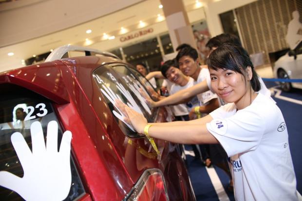 Bất chấp thời tiết mưa gió, 400 người đến từ 9 quốc gia trong khu vực vẫn quyết tâm đặt một tay lên xe hơi, trong cuộc thi thử thách sức bền của con người - Subaru Car Challenge.