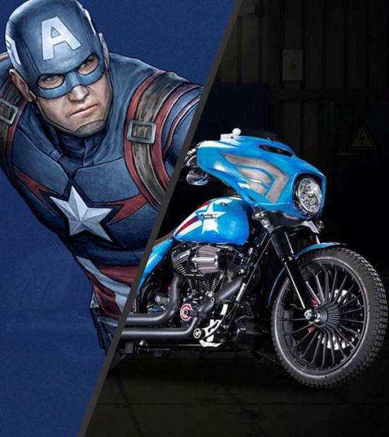 Để chào mừng kỷ niệm lần thứ 75 ngày sinh của Captain America sẽ diễn ra tại Úc và New Zealand, hãng Marvel đã chọn Harley-Davidson để hợp tác tạo ra 27 xe máy tùy chỉnh dựa trên những anh hùng và nhân vật phản diện trong các bộ phim của Marvel.