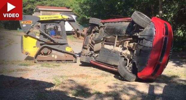 Video được đăng tải lên Facebook bởi một người đàn ông tên là Kaylor Card. Đoạn clip ghi lại hình ảnh người bố đâm chiếc xe ủi đất vào chiếc xe A4 và khiến chiếc xe lật nhiều vòng. Trước khi clip kết thúc, chiếc xe đã hư hỏng nặng, các tấm thân vỏ xe bị lõm trầm trọng, mái xe bị sụp xuống, cửa xe bị phá tan, và phần phía dưới xe chắc chắn đã tan nát thành nhiều mảnh.