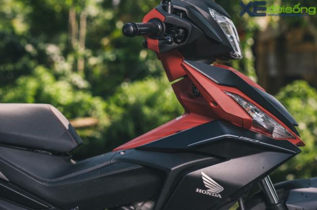 Ở phần đầu xe, trang bị đáng chú ý nhất là cụm đèn pha sử dụng bóng LED, cao cấp nhất trong các dòng xe số phổ thông của Honda. Mặt nạ trước xe thiết kế phức tạp với những đường nét kết hợp với hai cụm đèn tín hiệu tích hợp cùng đèn pha định vị nhỏ ngay dưới xi-nhan. Một điểm bất tiện của Honda Winner là thiết kế ổ khoá yên được đặt khá thấp, gần vị trí để chân trái của hành khách phía sau khiến việc mở yên khá bất tiện. Như các dòng xe số, cốp nhỏ dưới yên chỉ đủ chứa một bộ dụng cụ tối thiểu để sửa xe. Nhìn chung, Winner có ngoại hình quen thuộc của xe Honda, gần gũi và dễ nhìn.