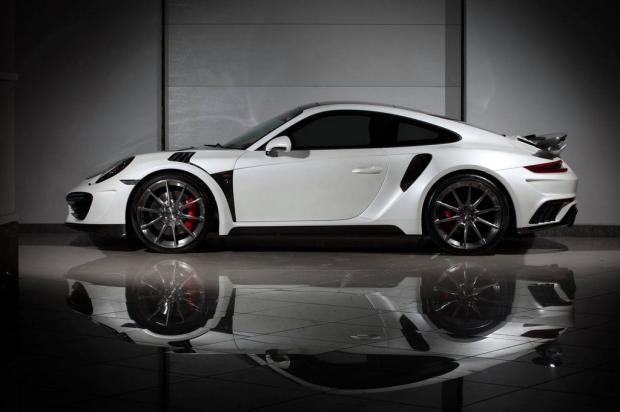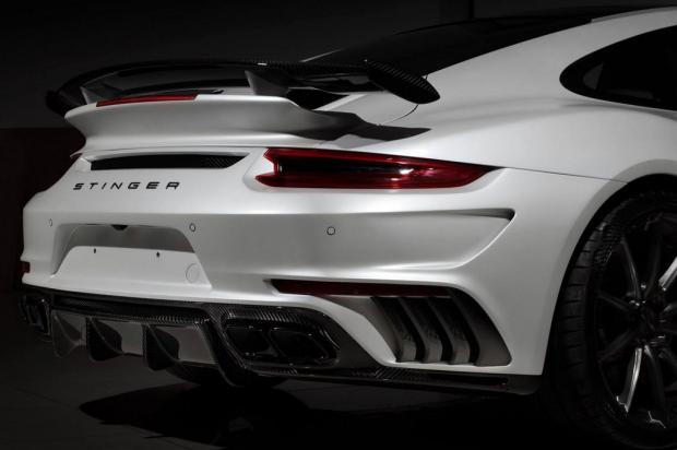 Chỉ có một vài thay đổi nhỏ so với các phương pháp trước đây, tuy nhiên thiết kế mới của Stinger lại tích hợp tốt hơn trong cơ thể của 911. Áp dụng trên Porsche 911 Turbo, gói Stinger bổ sung thêm một loạt các chi tiết sợi carbon từ mặt trước ra đến cản sau, sườn xe, một mui xe mới và cả lỗ thông hơi gợi nhớ về 911 GT3-RS.