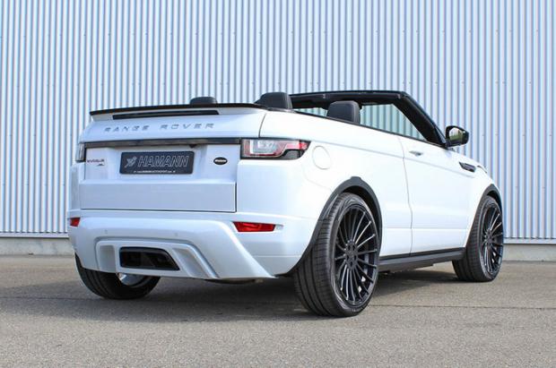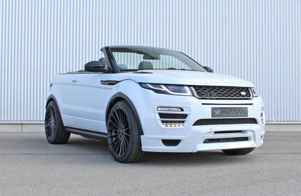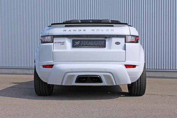 Chương trình nâng cấp của Hamann cho Range Rover Evoque Convertible gồm cả mẫu bodykit cá tính, cùng với cải tiến tăng hiệu suất vận hành. Bộ phụ kiện bodykit gồm cản trước và sau mới, lưới tản nhiệt và các đèn chiếu sáng ban ngày. Thiết kế ống xả với 2 đầu tròn được đưa vào chính giữa cản sau kiểu cách. Bộ bodykit được kết hợp với nhiều tuỳ chọn về mâm xe, ví dụ như mâm 22-inch đơn khối Anniversary Evo thiết kế đa chấu.