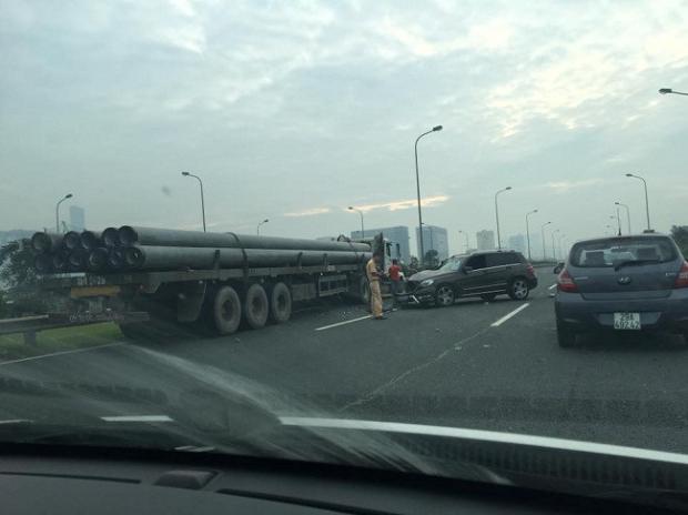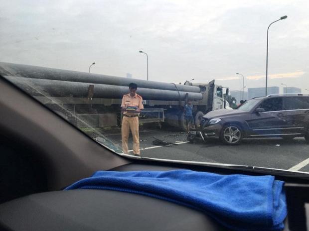 Cụ thể đã xảy ra va chạm giữa một xe tải 40 tấn chở ống nước bê-tông và một xe Mercedes-Benz GLK. Kết quả chiếc xe tải lao ra ngoài lề trái va vào dải phân cách và mắc kẹt còn chiếc GLK bị đâm nát đầu, hư hại cản trước và quay ngang ra đường. May mắn là không có ai bị thương nhưng tai nạn khiến con đường này ách tắc gần 1km trong khoảng hơn một giờ đồng hồ.