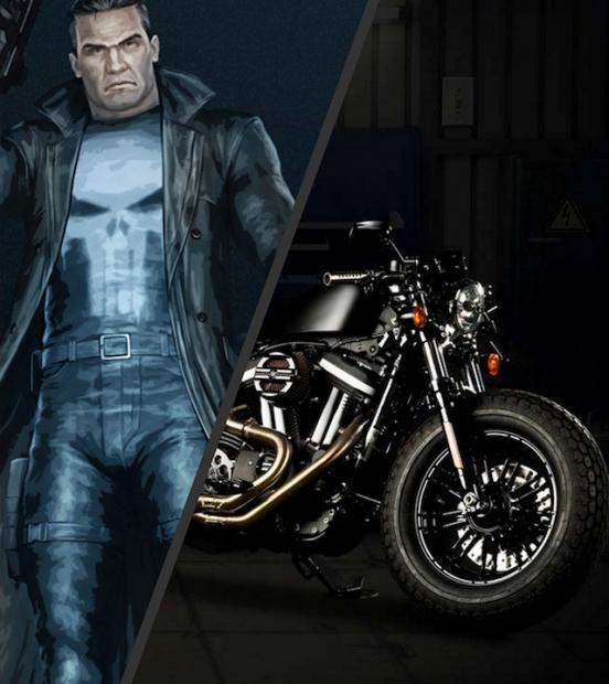 Là nhân vật không mang năng lực siêu nhiên nhưng Punisher một hình mẫu phản anh hùng mẫu mực, tiêu diệu kẻ ác bằng những vũ khí tối tân nhất. Anh là tuyến nhân vật với xuất phát điểm từ nỗi bất hạnh mất gia đình, do đó Harley-Davidson tạo cho nhân vật này chiếc Forty-Eight với tông màu chủ đạo đen mờ. Cụm máy V và ống xả mang đậm màu sắc kim loại cho thấy cá tính dứt khoát mạnh mẽ của Punisher.