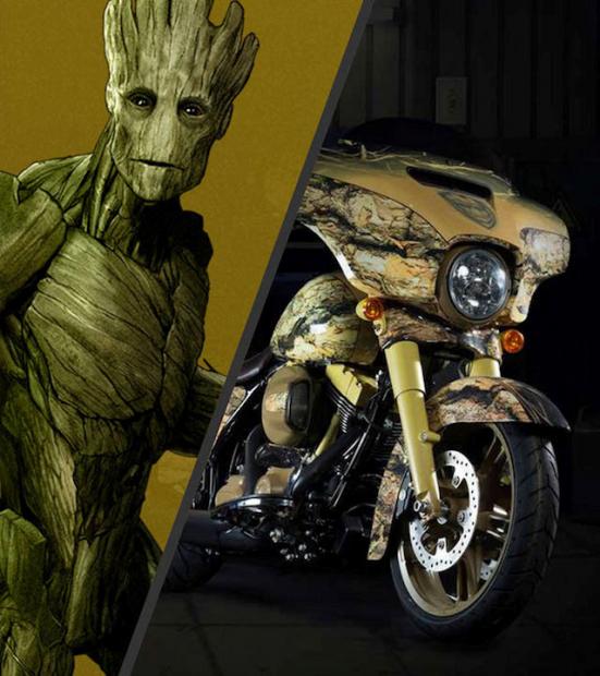 Là sản phẩm của máy tính và kỹ xảo, Groot (Người Cây) là tuyến nhân vật hot trong phim Vệ binh dải ngân hà. Qua bàn tay của Harley-Davidson, nhân vật này sở hữu chiếc Street Glide Special tương tự của Captain America, nhưng có màu sơn vẽ mang hình ảnh thiên nhiên: đất, nước và đá.