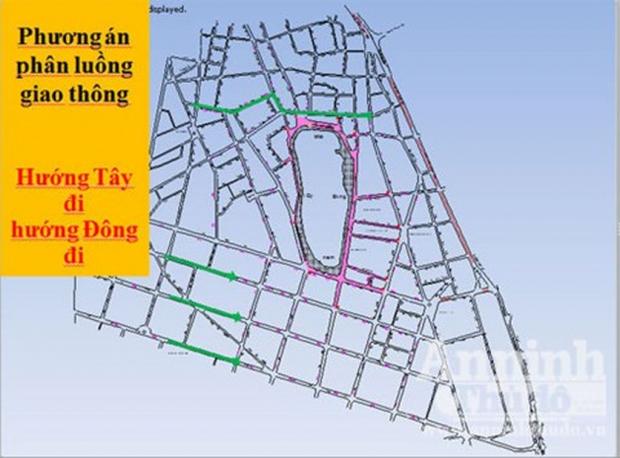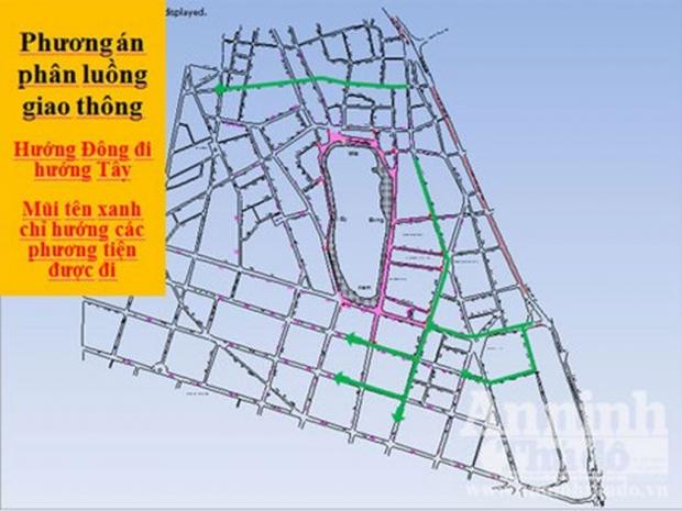 Phân luồng giao thông phục vụ đi bộ quanh khu vực hồ Hoàn Kiếm