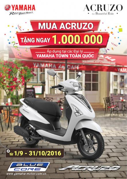 Yamaha Motor Việt Nam bắt đầu chiến dịch giảm giá bán 1 triệu đồng đối với mẫu xe Acruzo, kéo dài 2 tháng kể từ 1/9/2016.