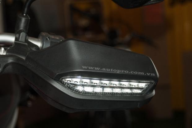 Ốp bảo vệ tay cầm lái tích hợp thêm đèn xi-nhan của Hyper 939 cũng được thiết kế lại ngầu hơn.