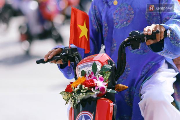 Mỗi chiếc xe đạp điện đều được kết hoa cưới đơn giản trước đầu xe.