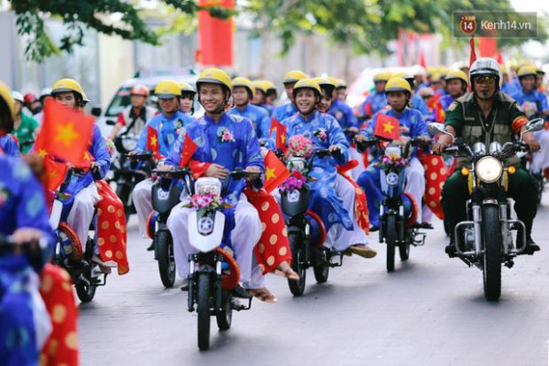 Ngay sau đó, đoàn xe mô tô cùng 100 đôi uyên ương trên xe đạp điện theo lộ trình phố đi bộ Nguyễn Huệ vòng ra Pastuer và dạo qua các tuyến đường như Võ Thị Sáu - 3 tháng 2 -Hoà Bình Đầm Sen -Lũy Bán Bích trước khi về địa điểm tổ chức tiệc cưới.