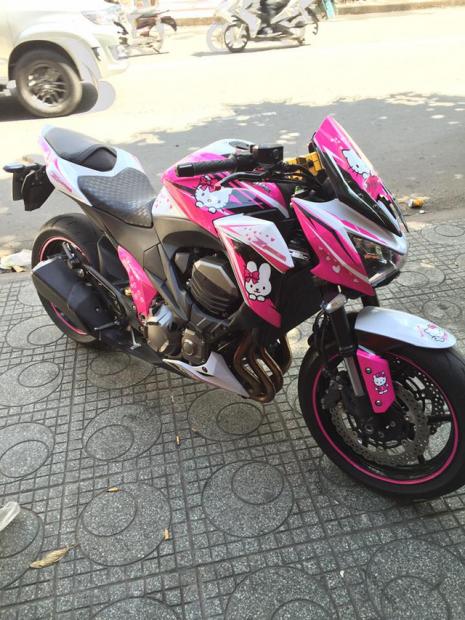 Vào năm ngoái, Thanh Tú điều khiển chiếc nakedbike Honda CB1000 cũng trong bộ áo Hello Kitty.