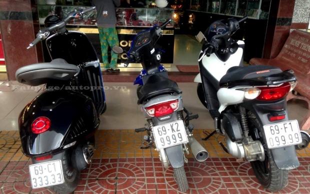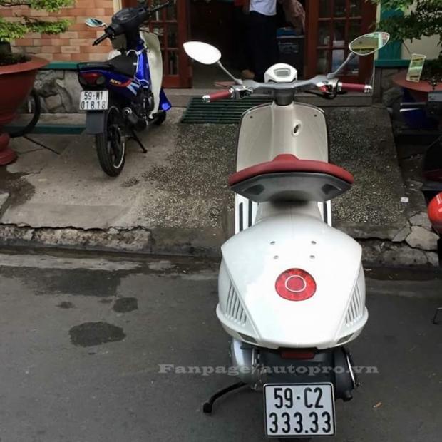 Những chiếc ô tô hay xe ga đắt tiền luôn được 'ưu ái' đi kèm với những biển kiểm soát 'khủng' như tứ hay ngũ quý đã trở nên quen thuộc tại thị trường Việt Nam. Ngoài mẫu tay ga Honda SH thì siêu tay ga Vespa 946 cũng được các tay chơi Việt cho diện những chiếc biển kiểm soát 'khủng'.