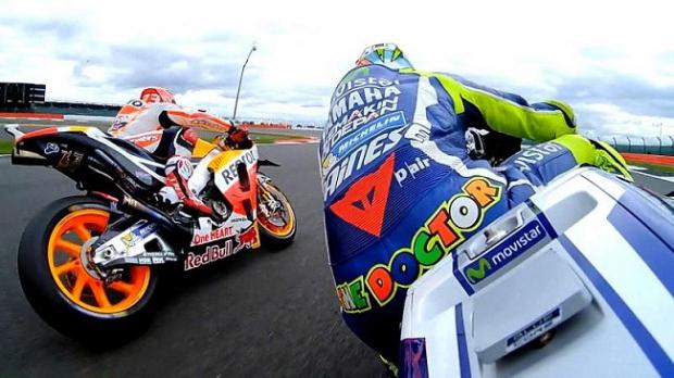 Góc máy quay trên xe của Rossi.Vị trí thứ 2 thuộc về Cal Cruthlow - tay đua vừa về nhất ở chặng đua Brno với quyết định vô cùng mạo hiểm khi chọn lốp xe.