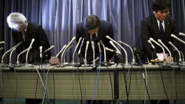 Ban giám đốc của Mitsubishi cúi đầu xin lỗi trong họp báo hồi tháng 4/2016.