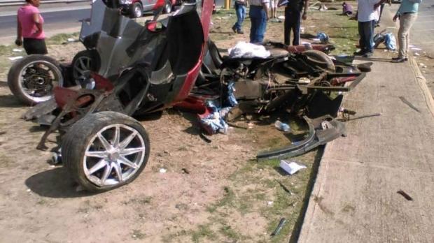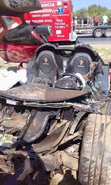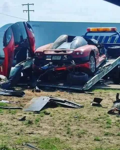 Những hình ảnh gây sốc này cho thấy chiếc xe đã vỡ tan tành. Toàn bộ đầu xe chỉ còn là một mớ hỗn độn giữa thép và sợi carbon, còn bánh trước, trục xe và trục bánh xe đã văng hẳn ra khỏi xe.