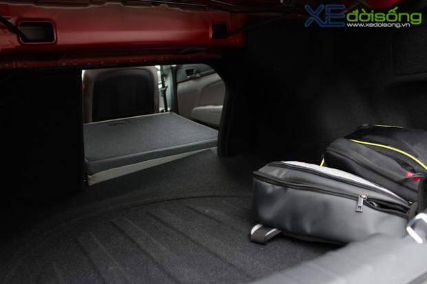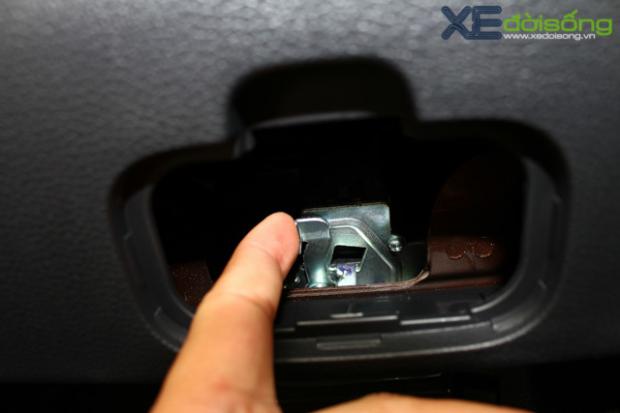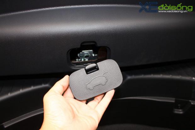 Với dòng sedan, bắt buộc phải hạ ghế sau bằng việc giật chốt trên tựa lưng, sẽ mở ra đường dẫn vào cốp sau