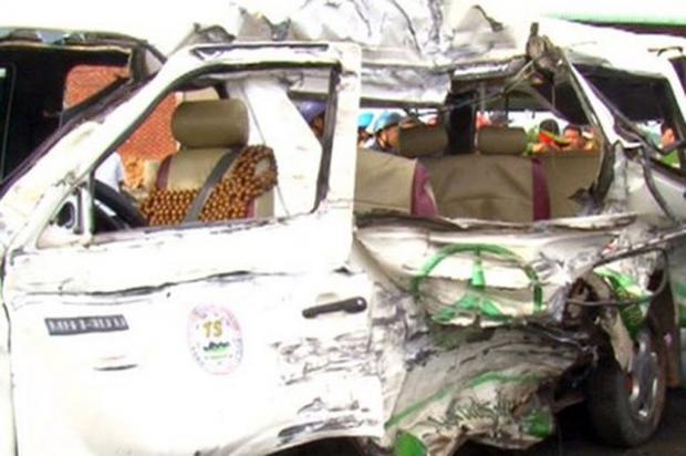 Chiếc xe khách 16 chỗ hư hỏng nặng sau vụ tai nạn