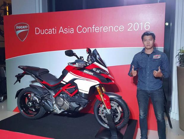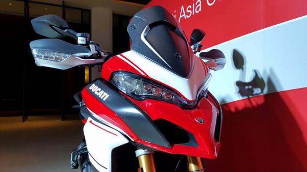 Ducati Multistrada 1200 Pikes Peak 2016 chụp tại một sự kiện của Ducati ở châu Á. Về ngoại hình, chiếc xe mang màu sơn tông đỏ sọc trắng kèm tem Ducati Corse. Đây là phiên bản vinh danh thành tích của Ducati nhân kỉ niệm 100 năm giải đua leo đồi được mệnh danh là 'giải đua lên trời' Pikes Peak.