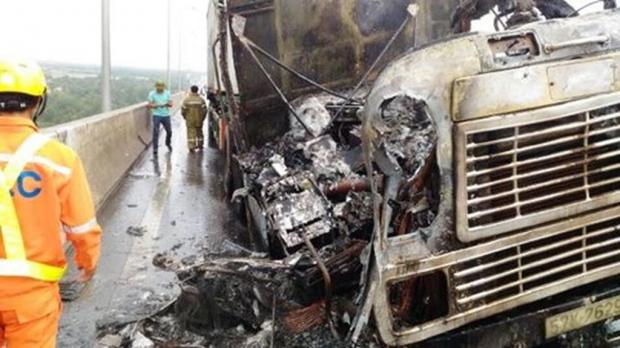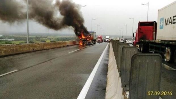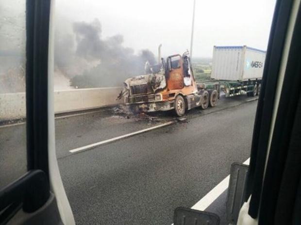 Hình ảnh xe Container bị bốc cháy trên cao tốc