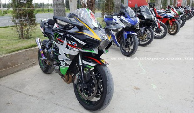 Nổi bật trong dàn xe phân khối lớn theo chân các biker tham gia trải nghiệm xe Ducati là 'siêu phẩm' trong thế giới 2 bánh Kawasaki Ninja H2.