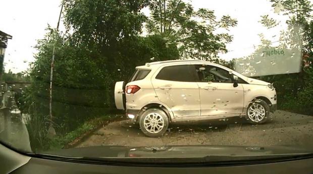 Có vẻ như người lái xe đã nhầm số hoặc về số không hết khiến chiếc xe vẫn ở chế độ số lùi và chiếc Ford EcoSport đã lùi rất dứt khoát từ đường đê...xuống thẳng sông.