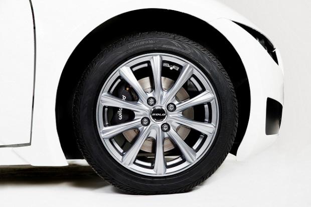 Sử dụng bánh xe kích thước 15 inch làm bằng hợp kim nhôm với 2 màu Anthracite xám hoặc Platinum Silve với kích thước lốp 155/60 phía trước và 175/55 phía sau, Electra Meccania Solo được trang bị lốp Continentalvà hệ thống phanh đĩa thép Wilsows thông dụng.Khoang hành lí của chiếc xe có dung tích lên tới 285 lít, không thua kém so với chiếc Mercedes Benz C300.