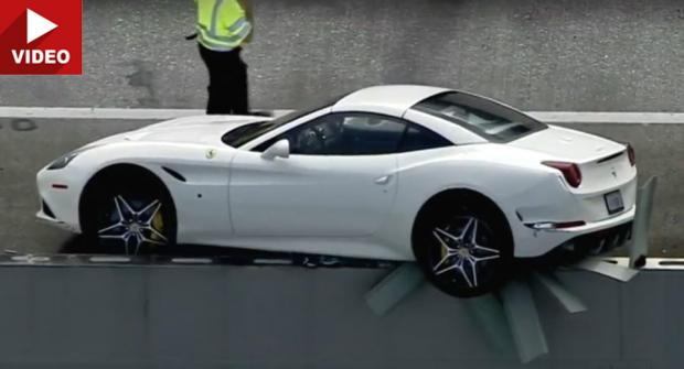Cụ thể Ferrari California T đã đâm phải hàng rào đường cao tốc khiến nó bị lơ lửng trên hàng rào chắn hàng tiếng đồng hồ.