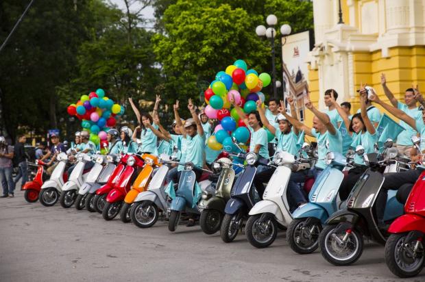 Gần 100 xe Vespa rực rỡ sắc màu 'tổng tấn công' đường phố Hà Nội