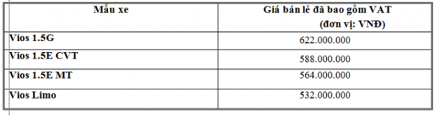 Giá bán Vios 2016 không thay đổi so với thế hệ cũ.