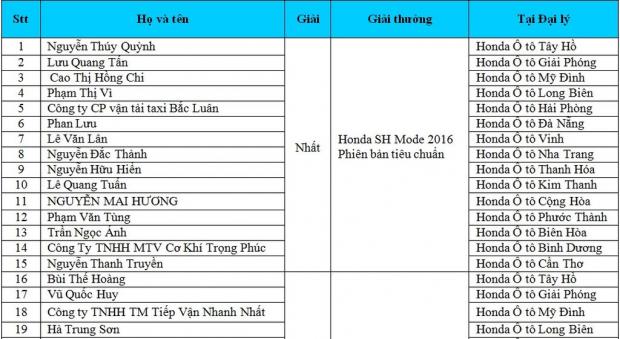 Buổi lễ bốc thăm đã diễn ra vào ngày gày 6/9/2016 đối với các Đại lý miền Bắc, 8/9/2016 đối với các Đại lý miền Trung và 10/9/2016 đối với các Đại lý miền Nam tại các Đại lý chính hãng và chọn ra được danh sách 30 khách hàng may mắn trúng giải trong tổng số hơn 1.000 khách hàng tham gia chương trình.