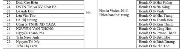 Giải thưởng bao gồm 15 giải nhất (mỗi giải là một xe máy Honda SH Mode) và 15 giải nhì (mỗi giải là một xe máy Honda Vision) cùng nhiều quà tặng hấp dẫn.