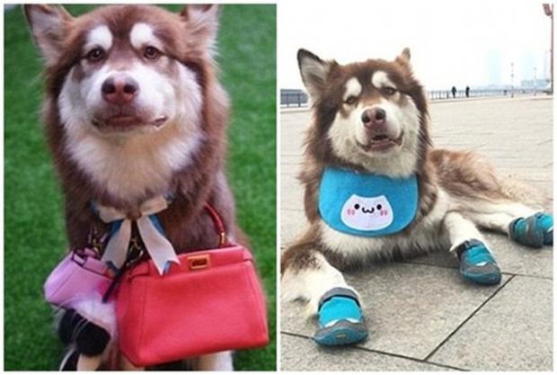 Chưa dừng lại, trong cùng năm đó, anh chàng lập dị này lại tiếp tục sắm cho con vật của mình chiếc túi Fendi màu hồng và không quên chụp nó lên Weibo.