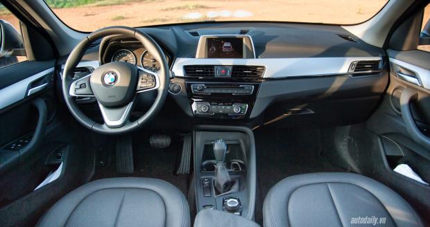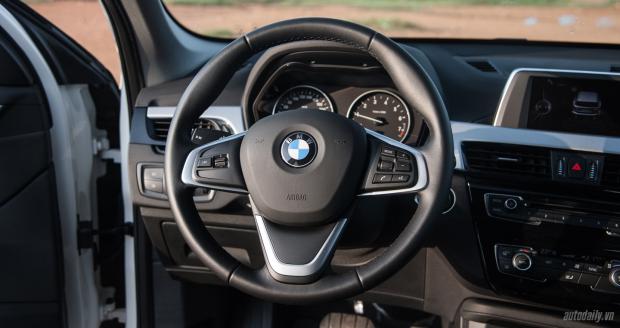 Nếu như ngoại thất của BMW X1 2016 là sự lột xác hoàn toàn thì nội thất của xe cũng nhận được khá nhiều những thay đổi theo hướng trẻ trung, năng động và tiện ích cho người dùng hơn. Bước vào bên trong xe, điểm nhấn đầu tiên mà tôi thấy được trên mẫu xe này chính là kiểu thiết kế tập trung tối đa vào người lái. Đưa tay chạm vào vô lăng, bạn sẽ cảm nhận được sự mềm mại từ loại da bọc cao cấp. Tại đây, BMW không quên tích hợp những phím chức năng cơ bản như điều chỉnh âm thanh, đàm thoại rảnh tay hay giới hạn tốc độ của xe.