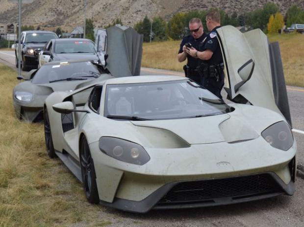 Hai chiếc Ford GT nguyên mẫu đang trên đường thử nghiệm và bị cảnh sát giao thông Mỹ bắt phạt do chạy quá tốc độ.