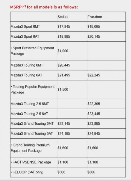 Cuối cùng, gói Popular Equipment Package cũng đan xen xuất hiện cùng gói Sport bằng cách thêm phần cản trước, ăng ten vây cá mập, hệ thống âm thanh Bose 9 loa, radio vệ tinh SiriusXM, cửa sổ trời, gương trang điểm và kính che nắng cho người lái. Tất cả đều có sẵn và độc quyền trên bản Mazda3 Touring Grand, với chi phí 1.600 USD (~ 35,6 triệu VNĐ).