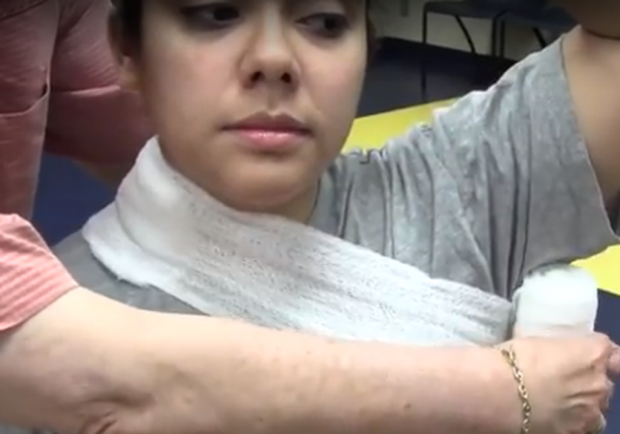 Băng ép vết thương và cố định qua vùng nách để hạn chế nguy cơ mất máu cho nạn nhân (Ảnh mang tính chất minh họa)