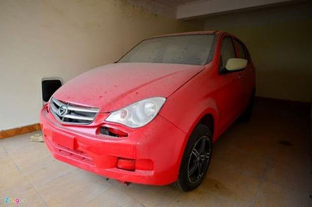 Chiếc ôtô được ông Huyên rất tâm huyết và đặt tên 'Duyên dáng Việt Nam - Viet Nam Graceful' bụi phủ dầy khắp nơi do lâu không hoạt động