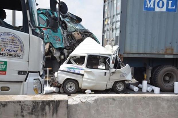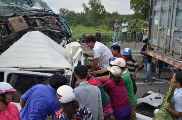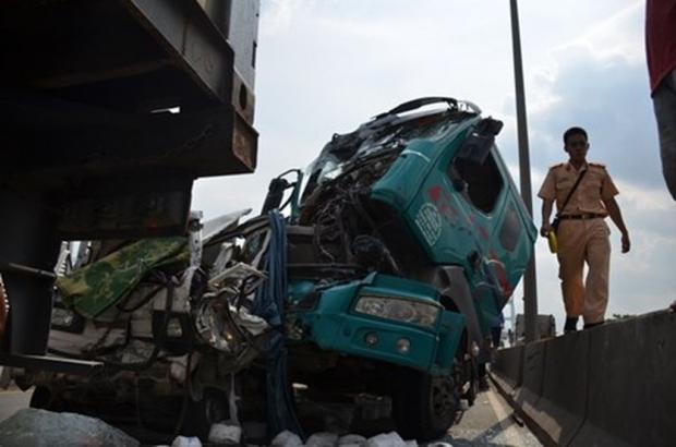 Chưa dừng lại, xe container mang BKS: 51C – 764.31 sẵn trớn tiếp tục lao tới tông vào đuôi xe container mang BKS: 89LD - 002.51, tạo thành chuỗi va chạm liên hoàn giữa 5 xe. Vụ tai nạn thảm khóc khiến tài xế ô tô nhỏ bị ép nát người, tử vong tại chỗ.