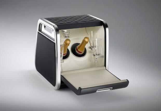 1. Tủ lạnh chứa rượu Champagne: có khả năng chứa và làm lạnh 2 chai rượu Champagne và 4 chiếc ly đặc biệt được chế tác tinh xảo bởi nghệ nhân David Redman ở London.