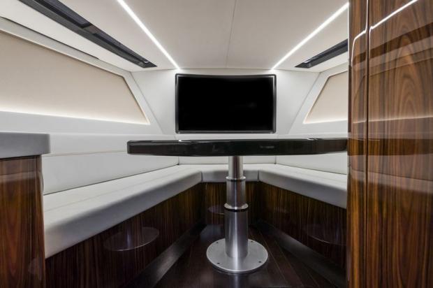 Ngoài ra, Aston Martin đã trang bị cho du thuyền đua một vô lăng, tay ga, và cần điều khiển sản xuất từ kim loại bóng. Xe còn có hệ thống định vị và hệ thống thông tin giải trí tiên tiến, dưới boong thuyền, người dùng còn có nhà vệ sinh, điều hòa nhiệt độ, một giường ngủ lớn, máy làm cà phê và lò vi sóng.