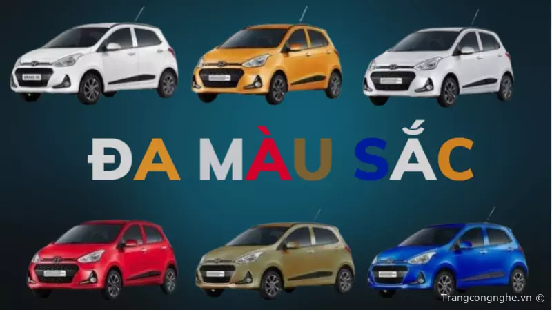Hyundai Grand i10 2023 được trang bị bảng màu sắc đa dạng với tùy chọn từ đen, trắng, đỏ, xanh dương, cam, và màu vàng cát. Mỗi màu sắc đều mang đến một phong cách riêng, giúp xe trở nên độc đáo và phù hợp với sở thích của từng khách hàng.