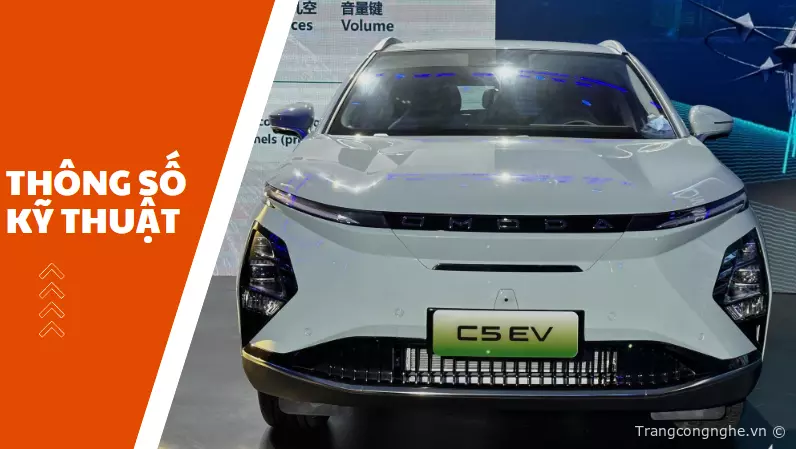 Dưới đây là thông số kỹ thuật của Omoda C5 EV, một chiếc xe ô tô điện tiện dụng và thân thiện với môi trường.