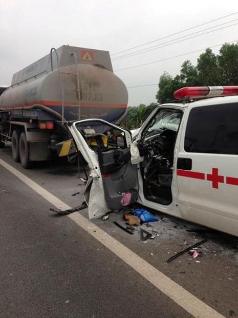 Khi đi đến đoạn gần trạm thu phí thuộc địa phận huyện Long Thành, tỉnh Đồng Nai, xe bất ngờ đâm vào đuôi xe bồn mang BKS: 51C – 697.85, do ông Nguyễn Thành Công (ở Cam Ranh - Khánh Hòa) đang đậu ở làn dừng khẩn cấp phía trước. Vụ tai nạn làm tài xế xe cứu thương bị mắc kẹt trong ca bin.